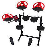 Электронные барабанные установки включают в себя несколько пэдов, тарелки и педали. Их можно доукомплектовать за счет дополнительного оборудования. Электронные барабанные установки компактны, просты в установке и бесшумны. Они занимают значительно меньше места, чем акустические, поэтому их часто размещают дома или в небольших студиях. Совместимы с наушниками