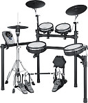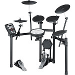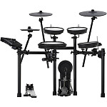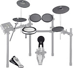 Электронные барабанные установки включают в себя несколько пэдов, тарелки и педали. Их можно доукомплектовать за счет дополнительного оборудования. Электронные барабанные установки компактны, просты в установке и бесшумны. Они занимают значительно меньше места, чем акустические, поэтому их часто размещают дома или в небольших студиях. Совместимы с наушниками