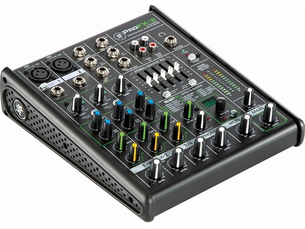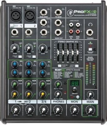 MACKIE ProFX4v2 представляет собой компактный 4-канальный микшер с процессором эффектов. Модель ProFX4v2 является самой младшей в линейке концертных микшеров ProFX. Микшер имеет 4 входных канала, два из которых моно и два стереоканала для подключения цифровых фортепиано и других инструментов в стерео режиме. Как и другие модели этой серии, микшер оснащен фирменными микрофонными предусилителями Mackie Vita. Для того, чтобы придать красок вокалу или инструментам пользователи могут воспользоваться богатой секцией эффектов студийного качества встроенного процессора ReadyFX. Процессор имеет 16 эффектов, среди которых самые популярные пресеты эффектов реверберации (Reverb), дилей (Delay), хорус (Chorus) и многие другие.