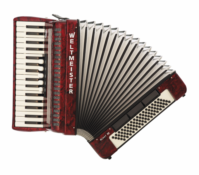 Achat-III-80/34-RD Achat 80 Аккордеон 34/80/III/5/3, красный, с ремнями и чехлом, Weltmeister
