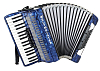 Левая рука, готовая клавиатура: 72 кнопки, 3 регистра, диапазон G - d' #.