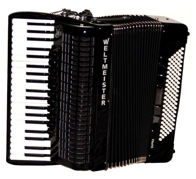 Аккордеон Weltmeister Supra 120 Cassotto- 41/120/IV/11/5/ Четырехголосый классический Cassotto инструмент. 41 клавиша правой клавиатуры, 120 клавиш басовой клавиатуры, 11 регистров правой клавиатуры, 5 регистров басовой клавиатуры. Ремни и футляр в комплекте. Цвет: черный.