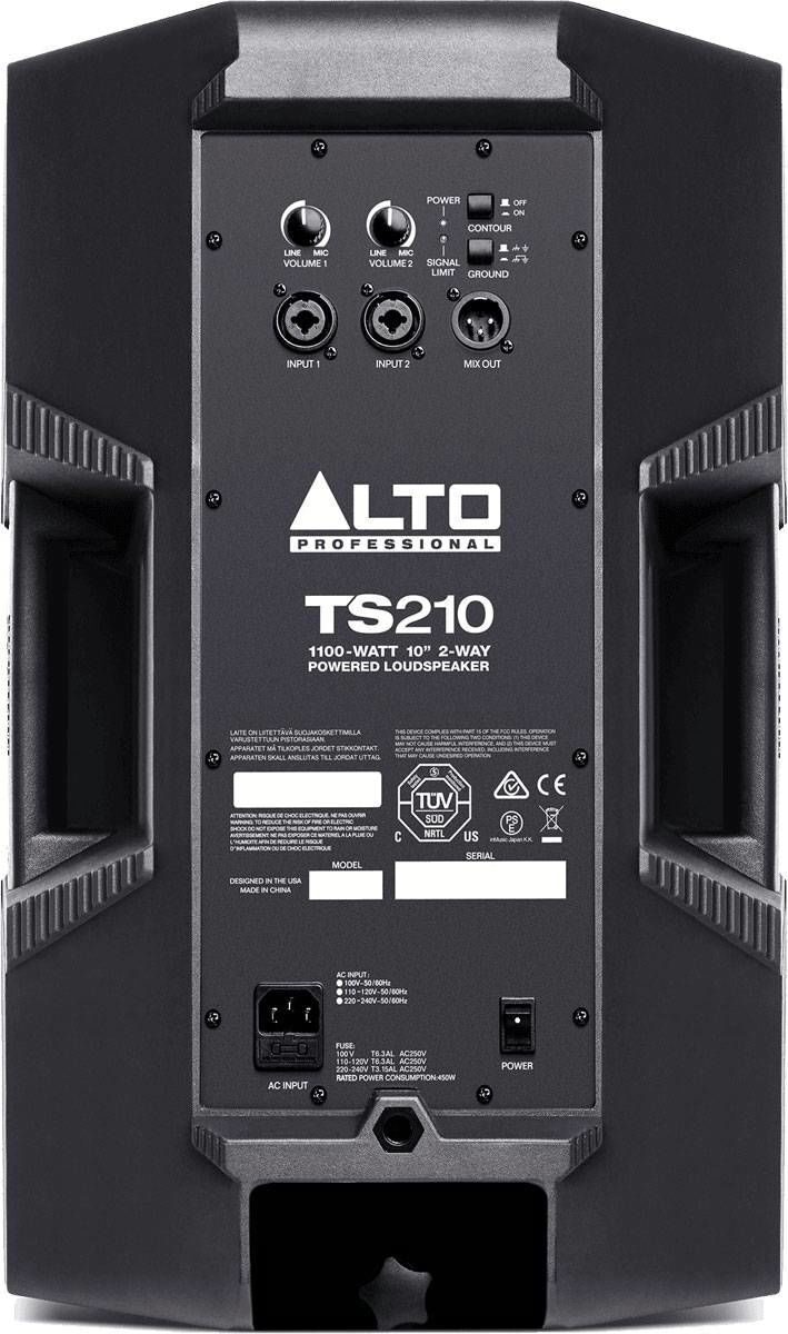 Alto TS210 представляет собой активную, двухполосную акустическую систему. Акустическая система обладает достаточно высокой мощностью и может быть использована для озвучивания небольших мероприятий, спортивных программ, презентаций, залов и других мест общего пользования. Система прекрасно передает звучание голоса и музыкального сопровождения живой группы или музыкальной записи. Особенностью этой модели является встроенный модуль беспроводной связи Bluetooth (A2DP) для подключения мобильных и медиаустройств. Обладая высокой мощностью, АС также может быть использована как ВЧ-СЧ система в трехполосных акустических комплектах вместе с сабвуферами Alto.