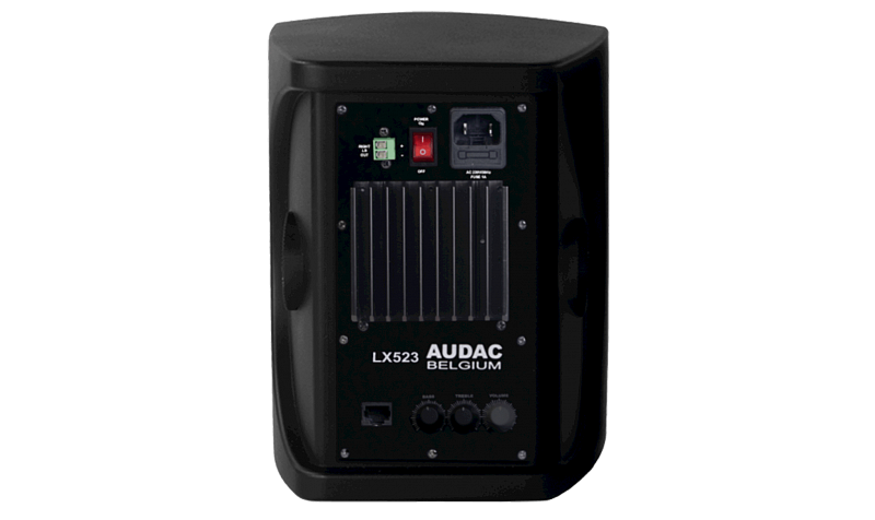 LX523/B – активный стереокомплект трехполосных акустических систем, предназначенный для совместной работы с удаленно расположенными устройствами WP523 или RM523 с входами для транслируемых сигналов и элементами управления системой. В этих же устройствах осуществляется локальное микширование сигналов. Используется для аудиторий, классов и залов презентаций. Максимальная выходная мощность 2x40 Вт.