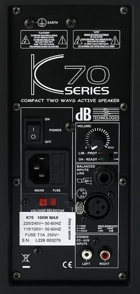 DB Technologies K 70 - активная 2-х полосная акустика с корпусом из полиэтилена высокой молекулярной плотности мощностью 65 Вт.