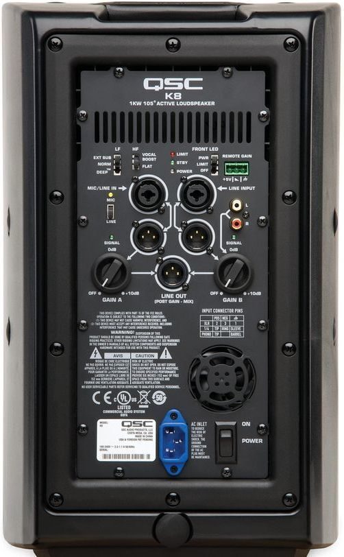 Премиум класса материалы, современная конструкция и несколько вариантов установки и подвеса позволяют использовать К8 в широком ассортименте применений от живого до инсталляционного. Входы XLR и 1/4'' TRS принимают микрофонные и линейные уровни, а RCA входы позволяют подключать МР3/CD плееры и линейного уровня микшеры. До трех источников звука микшируются внутри и суммируются в сбалансированный выход для последовательного подключения нескольких. Отдельные прямые выходы предусмотрены на каждом канале для дополнительной выходной гибкости. Встроенные переключатели имеют предустановленные настройки эквалайзера. ВЧ переключатель может быть установлен на Vocal Boost для дополнения в вокал высоких частот в критическом СЧ диапазоне или на Flat для более точного воспроизведения входящего сигнала. НЧ переключатель может быть установлен на NORM, DEEP для дополнительного расширения баса или на EXT SUB для использования с внешними сабвуферами. Еще одной уникальной характеристикой К серии является возможность дистанционного управления посредством подключенного потенциометра (не включен) во встроенный Euroblock разъем. В инсталляционном применении несколько систем К серии управляются из одной точки.