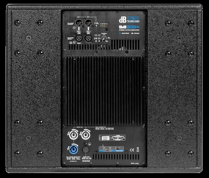 DVA-S09DP – активный бандпасс сабвуфер с 15-дюймовый вуфером, кроссовером с двумя частотами отсечки (90 и 120 Гц) и переключателем инверсии фазы. Один разъем PowerCon подключается к источнику питания, а на два выхода PowerCon – сателлиты. Оптимально использовать с акустическими системами DVA T4 и DVX D10.