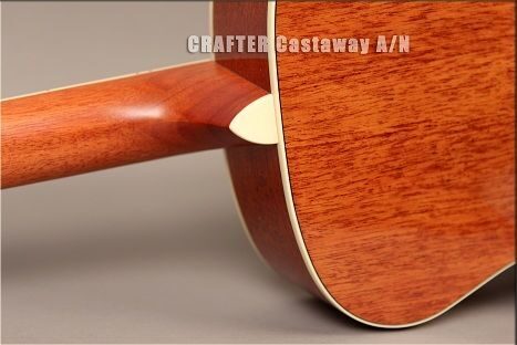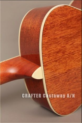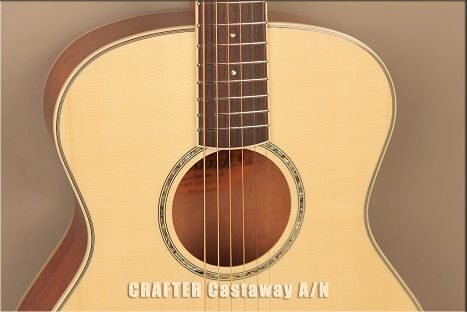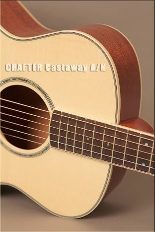Гитары серии Castaway по размеру представляют собой нечто среднее между обычной акустической     гитарой и travel-гитарой. Корпус имеет популярную форму Grand Auditorium, но мензура уменьшена до 597 мм (против традиционных 648 мм). Но не стоит думать, что такой инструмент теряет что-то в своих звуковых характеристиках – благодаря выпуклой нижней деке гитара звучит так же мощно. Короткая мензура влияет на плотность расположения гармоник, что в свою очередь придает звучанию мягкость и глубину.