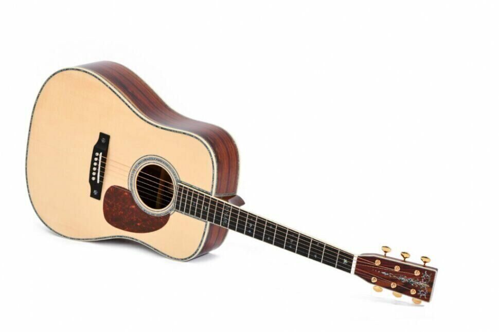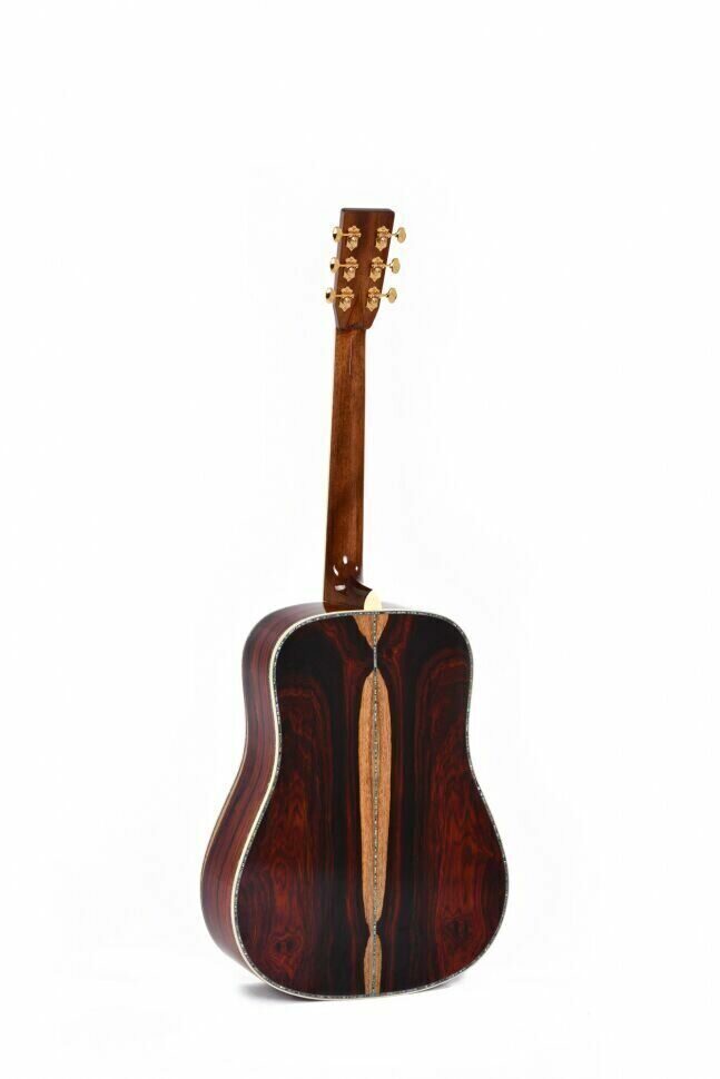Гитара Sigma SD-50 50th Anniversary -Это классический дредноут с креплением грифа «ласточкин хвост», созданный с использованием массива кокоболо в нижней деке с обечайками и европейской ели. Cocobolo - это дерево, похожее на палисандр, оно дает сбалансированный универсальный тон, который дает ели отличную платформу для яркой динамичной проекции. И корпус, и головка грифа украшены эффектной окантовкой abalone. Для улучшенных игровых возможностей махагоновый гриф имеет низкий профиль, а накладка из эбони имеет инкрустацию на 12 ладу «50 лет». Еще одно доказательство ее ценности – колки Grover Gold и порожки из натуральной кости, работающие совместно для поддержания стабильно строя и интонации.