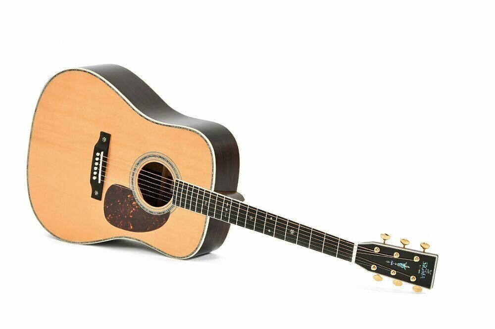 Акустическая гитара Sigma SDR-41 Limited с кейсом сочетает в себе верхнюю деку из цельной ситкинской ели и корпус из массива индийского палисандра. Эта модель LE, выпущенная ограниченным тиражом всего 60 гитар по всему миру, прекрасно построена и очень полезна как для соло, так и для ритм-гитаристов. Abalone использовался повсюду для вставок и окантовки, придавая этой гитаре превосходный вид, гармонирующий с красивой древесиной, покрытой глянцевым лаком. Махагоновый гриф с накладкой из черного эбони дополнен порожком из натуральной кости, а золотые колки Grover с открытым зубчатым механизмом завершают комплект. Поставляется в футляре Softshell. Более того, она профессионально настроена.