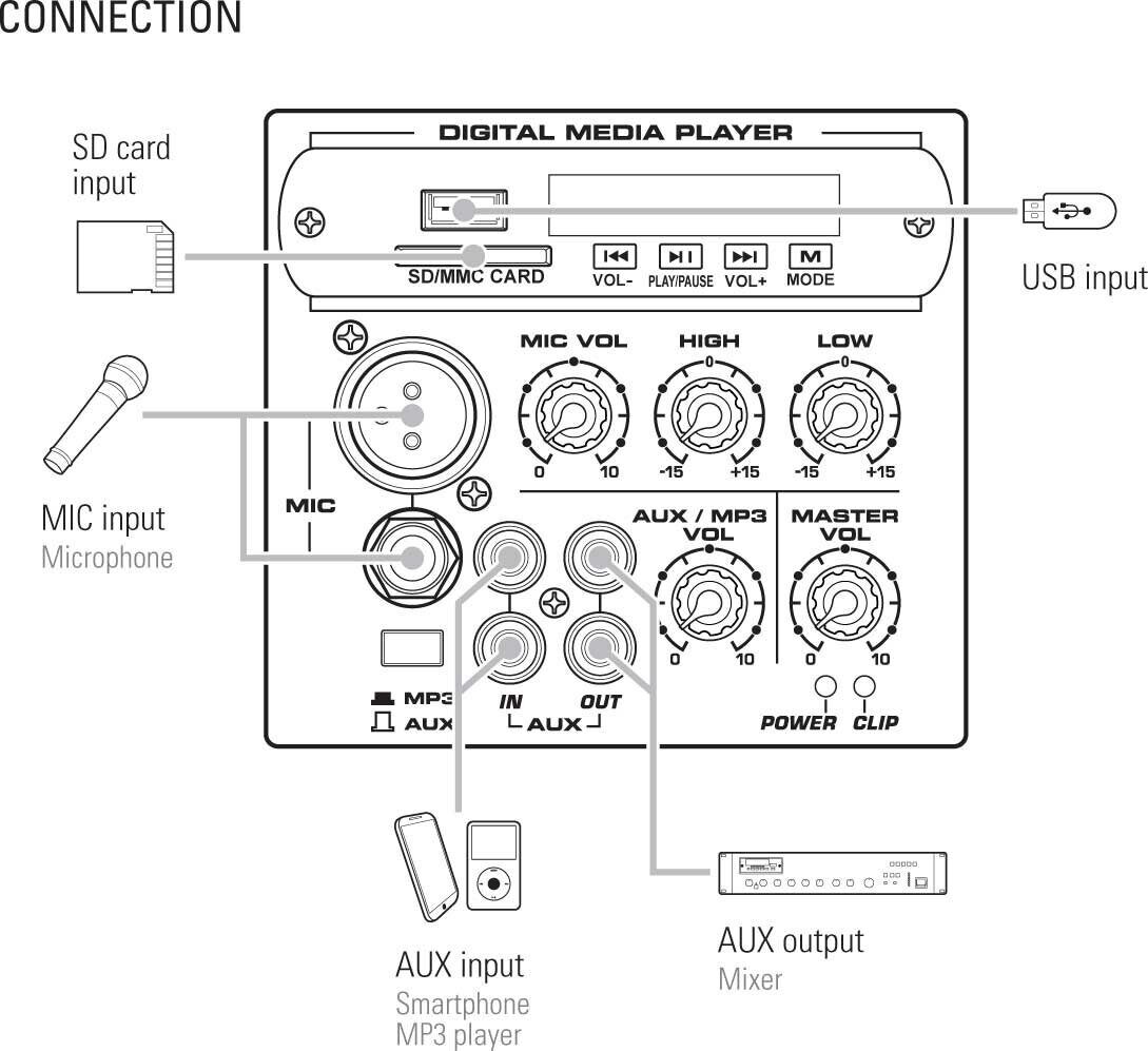 Встроенный Mp3 плеер, слот для SD карты, USB порт, Bluetooth.
