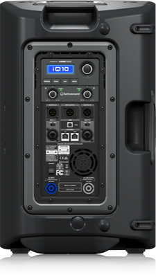 На тыловой панели Turbosound iQ10 расположены два основных балансных комбинированных входа на TRS/XLR, регулировка входного уровня каждого из них осуществляется общей ручкой. Есть и выходы XLR-M для посыла копии сигнала источника на другие громкоговорители с использованием обычного кабеля XLR: всего выходов три, и вы также можете управлять ими с помощью большой ручки и четырех кнопок под ЖК-дисплеем. С помощью данного пользовательского интерфейса вы можете контролировать уровни звука, настраивать эквалайзер и активировать пресеты частотной характеристики, либо же менять и активировать заранее заданные настройки в зависимости от местоположения.