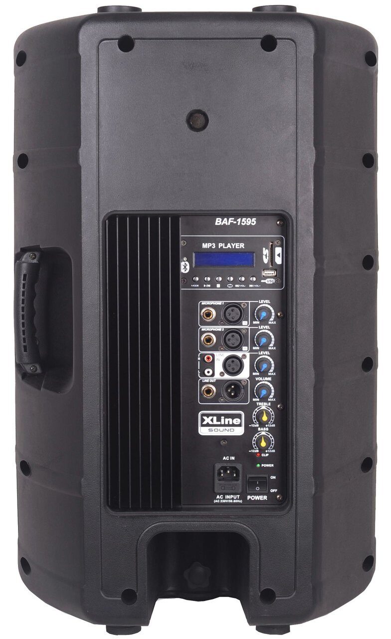 Xline BAF-1595BT - новая активная двухполосная акустическая система. Оснащена встроенным MP3 плеером и надежным аналоговым усилителем. Может быть установлена на пол, смонтирована на стойку (стакан 35 мм), или использоваться в качестве напольного монитора, благодаря входящим в комплект боковым подставкам.