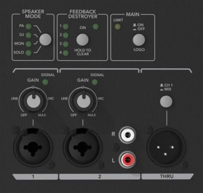 Акустическая система предлагает пользователям четыре режима работы, которые можно использовать в разных условиях. Это режимы PA, DJ, MON и SOLO. Благодаря цифровой системе DSP-коррекции, отвечающей за формирование чистого и точного звучания, акустическая система звучит одинаково хорошо на дискотеке, презентации, озвучивании музыкальной группы или вокального исполнения. Благодаря специализированным акустическим режимам, которые разработаны для разнообразного использования, пользователи будут обеспечены лучшими вариантами настроек звучания АС под разные условия. Встроенная система подавления обратной связи Feedback Destroyer активируется одной кнопкой. Она помогает защитить динамики и очистить звучание акустической системы в трудных акустических условиях.