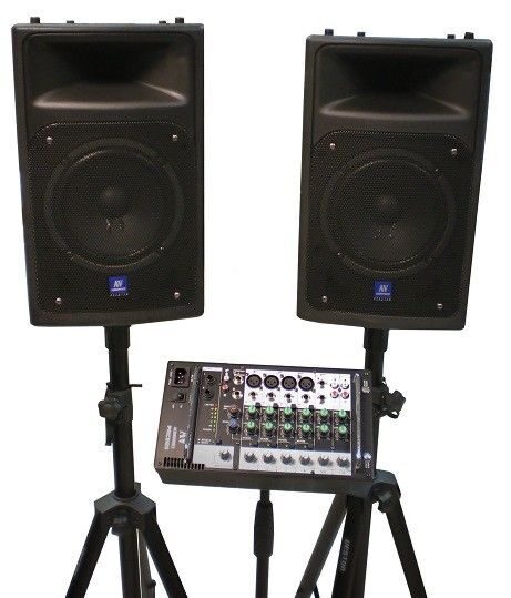 - 2х полосные пассивные акустические системы 1x8" 150Вт с нишами для установки микшера и хранения микрофона и шнуров (2шт.)