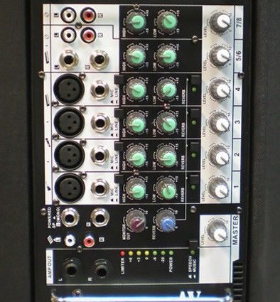 - активный микшерный пульт: усилитель 2х150Вт D class, 4 микр/лин. входа, 2 лин. стереопары, цифровой ревербератор