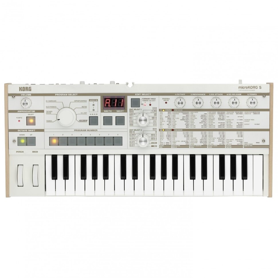 Этот новый инструмент обладает всеми функциями оригинального microKORG, включая простоту выбора программы желаемого музыкального жанра и последующего редактирования выбранного звука, вокодер с включенным миниатюрным микрофоном и работу от аккумулятора, что позволяет вам выступать в любом месте. В качестве первого простого в использовании синтезатора для начинающих, в качестве дополнительного живого синтезатора для сцены или в качестве звукового модуля для производства, microKORG S будет продолжать играть важную роль в каждой музыкальной сцене в течение многих последующих лет.