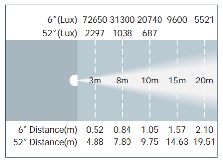 | Угол раскрытия луча: | 6°-54° |