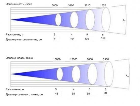 | Угол раскрытия луча: | 8°-30° |
