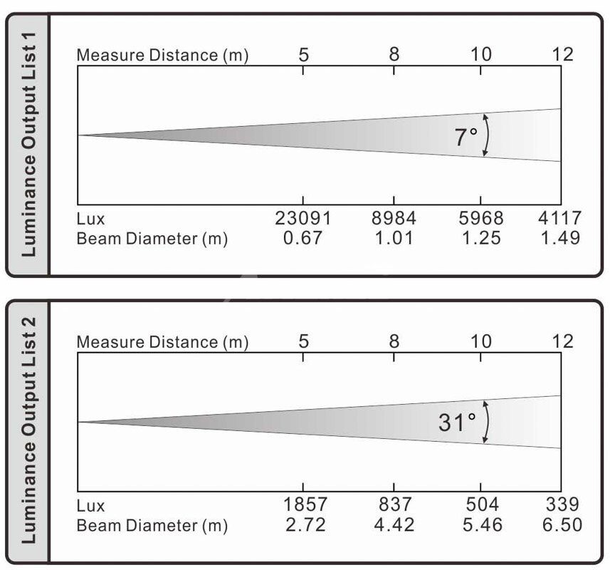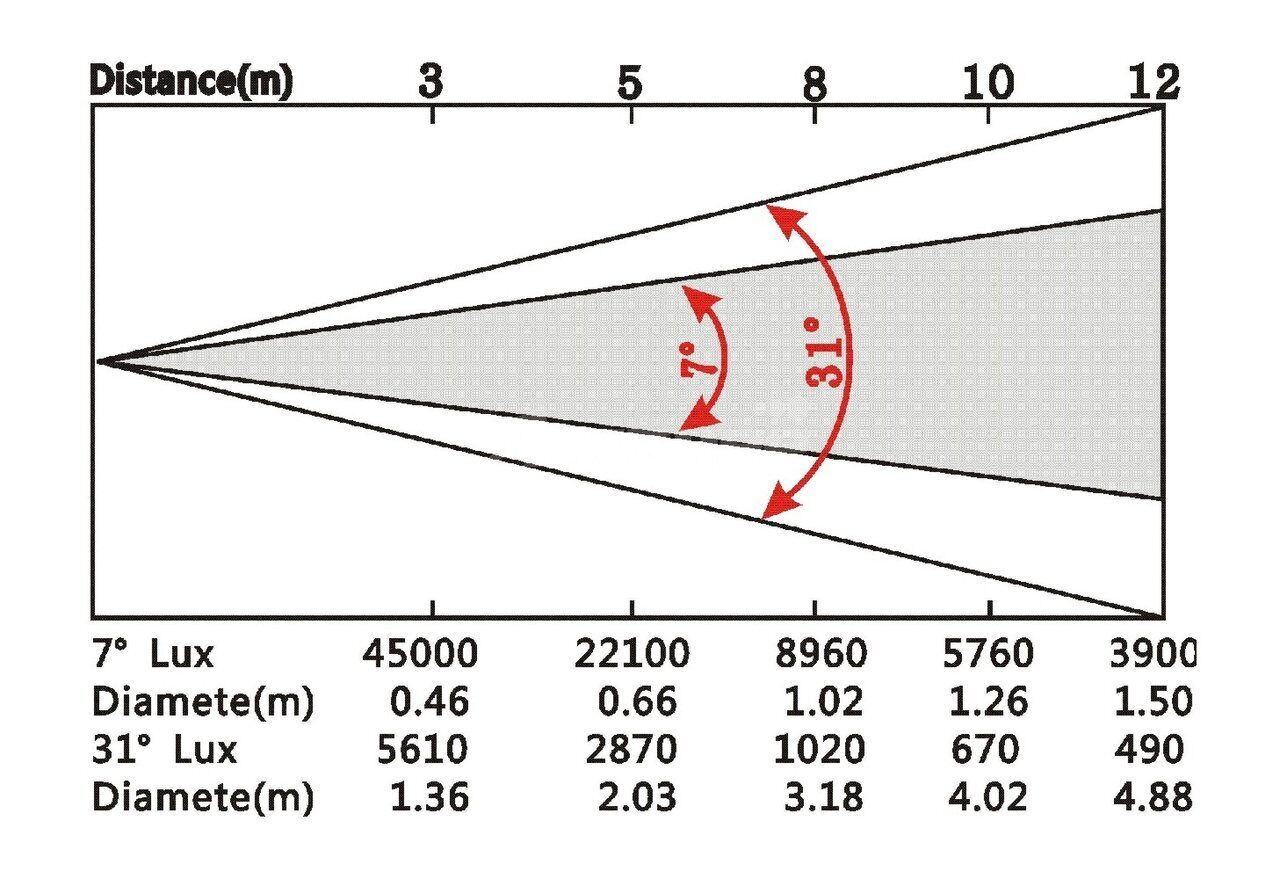 | Угол раскрытия луча: | 7°-31° |