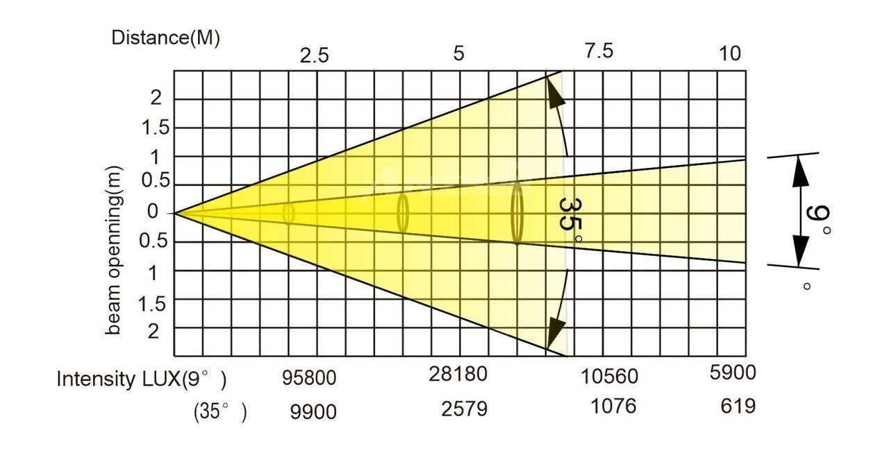 | Угол раскрытия луча: | 9°-35° |