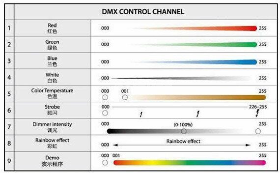 Количество каналов DMX512: 9 каналов