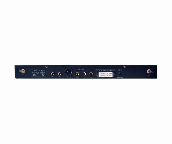 • Комплектация: блок питания, аудиокабель Jack – Jack (6.3мм), база приемник, четыре ручных передатчика, инструкция по эксплуатации.