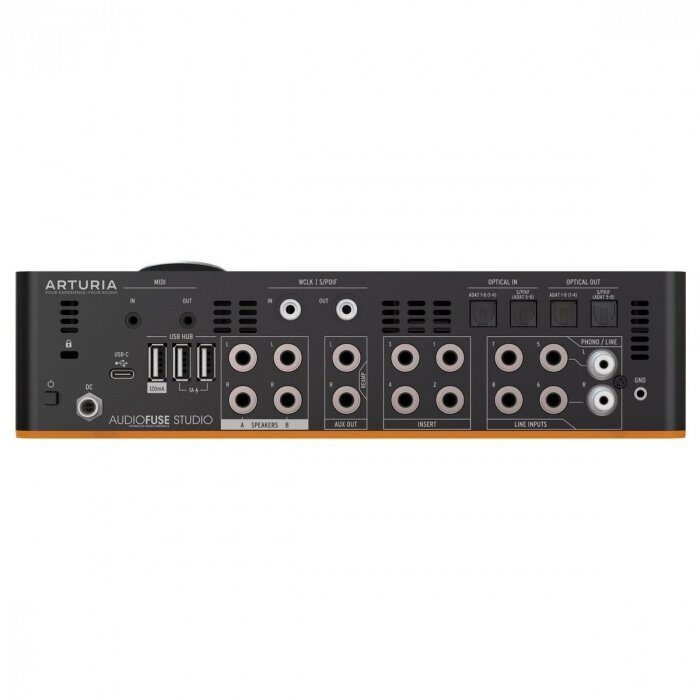 - Превосходная интеграция: MIDI I / O, обратно совместимый USB-C, S / PDIF I / O, Word Clock вход, выход/thru Cinch RCA