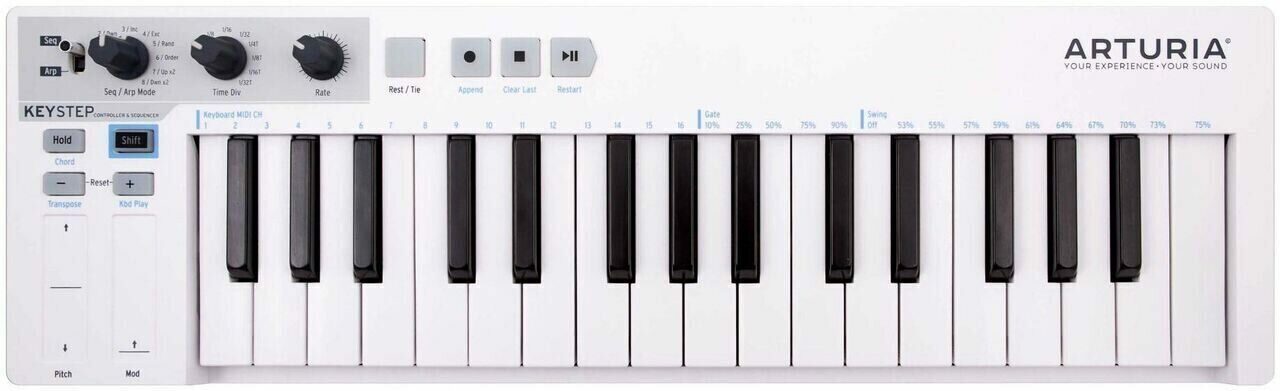 ARTURIA KEYSTEP успешно выдерживает конкуренцию с большинством более массивных клавишных контроллеров благодаря своему солидному набору функций, включая динамическую клавиатуру на 32 узких клавиш с функцией послекасания, высокую чувствительность питч-шифтинга и модуляции и, прежде всего, возможность управления практически любым типом синтезаторов посредством MIDI и CV.
