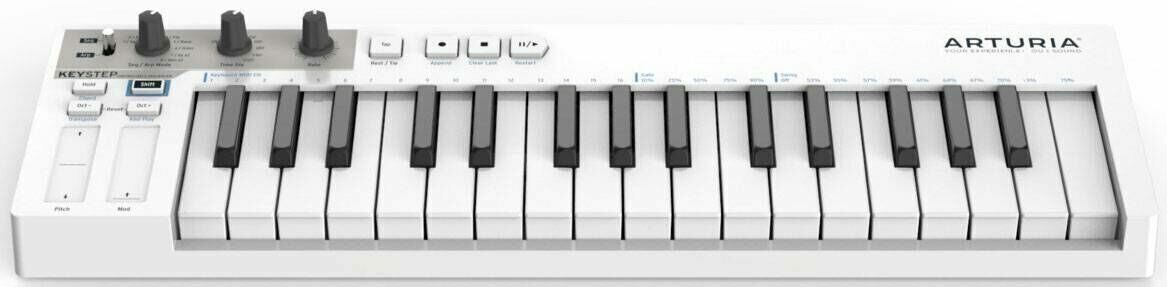 Компания ARTURIA выпустила в продажу новый USB-MIDI-контроллер ARTURIA KEYSTEP, анонсированный на зимней выставке NAMM 2016. Новинка представляет собой новый тип портативного музыкального инструмента, сочетающего в себе функции MIDI-клавиатуры с полифоническим шаговым секвенсором, что позволяет управлять как аналоговыми, так и цифровыми приборами.