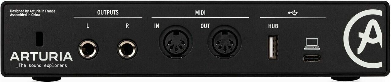 На передней панели аудиоинтерфейса Arturia MiniFuse 2 расположены два комбинированных входа для подключения кабелей с разъемами XLR или 1/4". Для подключения студийных мониторов используются балансные TRS выходы. Питание и связь с компьютером осуществляется с помощью USB-C. Для подключения внешних MIDI-устройств, на задней панели расположены MIDI in/out. Встроенный USB-хаб позволяет подключать к карте дополнительные USB устройства, такие как MIDI-клавиатура.