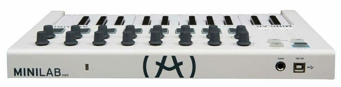 MiniLab MkII имеет несколько небольших, но не менее важных обновлений, которые делают его выбором профессионалов. Простое смещение регистра клавиатуры на октаву вверх и вниз с помощью специальных кнопок; изменение высоты тона и модуляции осуществляются с помощью небольших сенсорных полосок, а для получения полноценного звука клавишных можно подключить педаль сустейна.