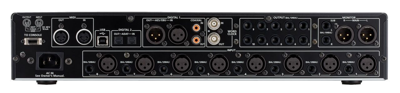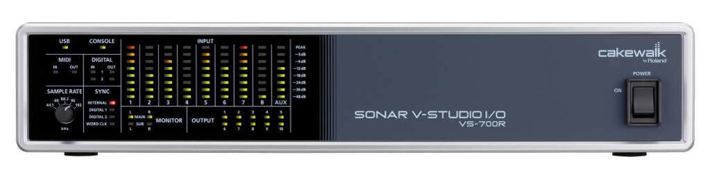 Блок ввода-вывода VS-700R имеет USB-аудио интерфейс, включающий в себя микрофонный вход и высокоомный вход для гитары. Два выхода на наушники расположены на управляющей консоли. Так же имеется 8 входов TRS/XLR с фантомным питанием и цифрово-аналоговые преобразователи 24 бита/192 кГц. 8 микрофоных предусилителей с цифровым управлением. Высококачественные процессоры входных эффектов, развитая входная коммутация включает переключение фазы, пад выключения, фильтр низких частот, эквалайзер, компрессор. Так же VS-700R снабжен встроенным аппаратным синтезатором FANTOM VS, содержащим в библиотеке более 1400 патчей от легенды из мира синтезаторов – Roland Fantom. Подключение к компьютеру происходит по USB 2.0.