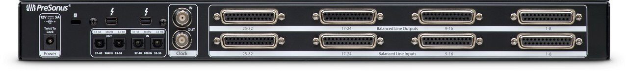 | Выходы | 32 линейных 4xD-SUB25 2 x ADAT (Toslink) WordClock BNC |