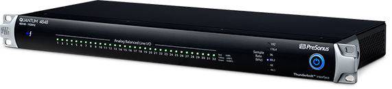 Основной особенностью новых звуковых интерфейсов Quantum от компании Presonus является использование высокоскоростного интерфейса Thunderbolt, а также возможность каскадирования до 4 интерфейсов Quantum одновременно, что позволяет собирать на базе компьютера системы записи/воспроизведения с количество каналов до 100 и более. Пользователи серии Quantum это, в первую очередь, владельцы компьютеров MAC. Высокая скорость передачи данных протокола Thunderbolt позволяет создавать стабильно работающие многоканальные звуковые устройства с ультанизким временем задержки менее 1 мс (значение получено при параметрах системы:192 kHz, 64 sample buffer in Studio One 4 on a MacBook Pro 2016, 2.7 GHz Intel Core i7 running 10.12.5. )