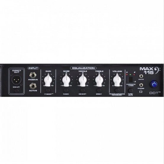 Басовый комбоусилитель Peavey MAX® 115 оборудован системой защитной компрессии DDT™, 15-дюймовым вуфером, трёхполосным эвкалайзером с функциями Punch, Mid-shift и Bright, психоакустической обработкой низких частот и запатентованной системой усиления TransTube®. MAX® 115 способен выдавать до 300 Вт и создавать удивительный мощный бас при довольно компактных размерах. Также есть встроенный хроматический тюнер, XLR с отрывом земли, 3.5-мм джек для наушников и вход AUX.