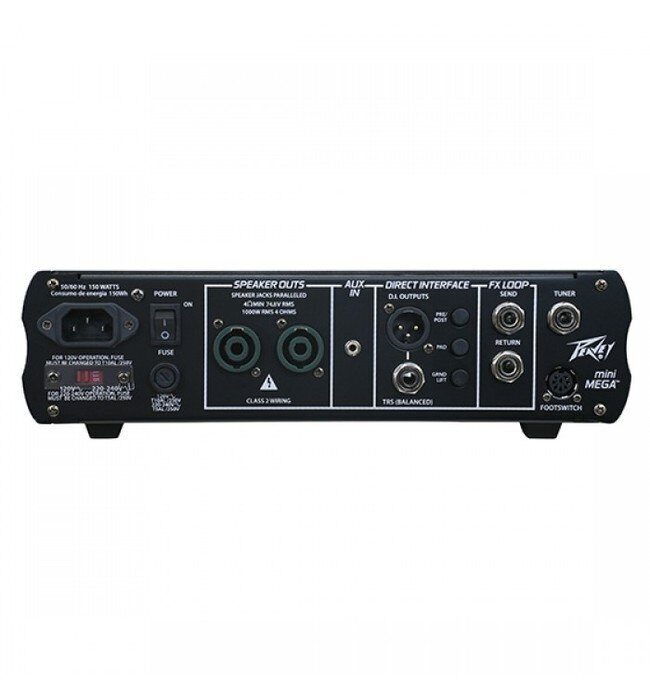 На задней панели усилителя вы найдете все что нужно для использования эффектов, или подключения к кабинету. MiniMEGA оснащен встроенной петлей эффектов, выходом на тюнер, регулировкой гейна и функцией "Crunch". Легкий и надежный Peavey MiniMEGA - отличный выбор для любого басиста.