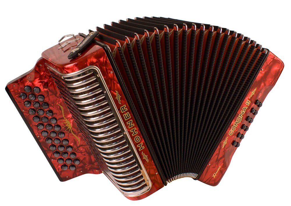 HOHNER Corona II XTREME FBbEb – 3-рядный, 2-голосный кнопочный аккордеон, специально созданный для профессиональных музыкантов, которые ищут помимо идеального звучания, комфортное исполнение, высокую функциональность и надежность, плюс мощный звук для своих выступлений. Отвечая всем этим и другим требованиям, данный баян имеет 34 перламутровые кнопки с динамической механикой, которые установлены по уникальной шумоподавляющей технологии, и регулируемый ремень для левой руки, что дает возможность использования инструмента любым аккордеонистом. Кроме потрясающего звука, подходящего для жанров Tex-Mex и Norteo, у него ошеломительный внешний вид  и долговечная конструкция, а также он способен дать артистам возможность использовать различные тона во время выступлений. Плюс поставляется вместе с эргономичными ремнями и чехлом, таким образом, можно сразу же после распаковки коробки идти к месту репетиции или выступления.