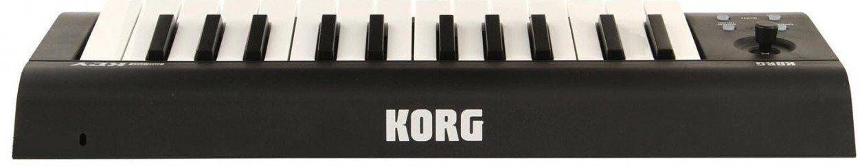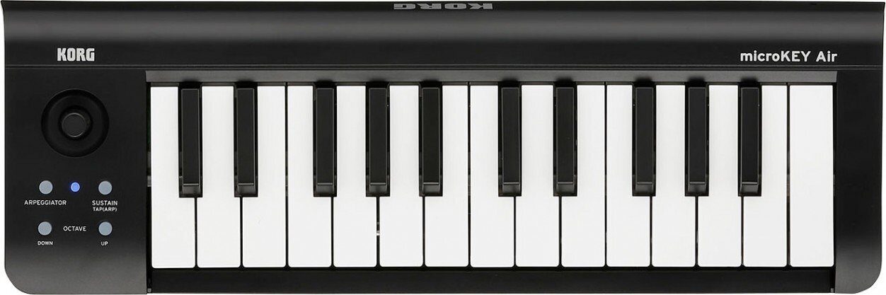 Korg Microkey2-25 – компактная беспроводная MIDI клавиатура, популярная модель от известного производителя, простая и удобная в использовании, обладающая широкими возможностями. Это модель из второго поколения линейки microKEY, которая сохранила все достоинства предшествующих моделей и получила ряд новых современных функций, в том числе возможность беспроводного соединения, поддержку iPad и iPhone. Korg Microkey2-25 Air - универсальная модель, которая отличается простотой конструкции, маленькими размером и весом, удобством коммутации. Это младшая модель линейки с 25-клавишной мини-клавиатурой. Подключение осуществляется по Bluetooth или через разъем USB. Клавиатура совместима с компьютерами под управлением Windows и Mac OS. Электропитание клавиатуры осуществляется от двух батарей типа АА или через кабель USB. Примерный срок работы от батарей – 30 часов. К этой модели нельзя подключать педали, но имеется специальная кнопка, которая выступает в роли демпферной педали. Для настройки параметров звучания, в том числе использования арпеджиатора, используется специальный джойстик. Размеры клавиатуры всего 39,5 см х 13,1 см, высота – 5,2 см. Вес – 670 г. Эту миниатюрную модель удобно перевозить, её можно брать с собой в поездки и путешествия. В комплекте с клавиатурой поставляется большой набор программного обеспечения для работы с аудио материалом - как ПО для компьютера, так и приложения для мобильных устройств: KORG Gadget Le и KORG Module Le.