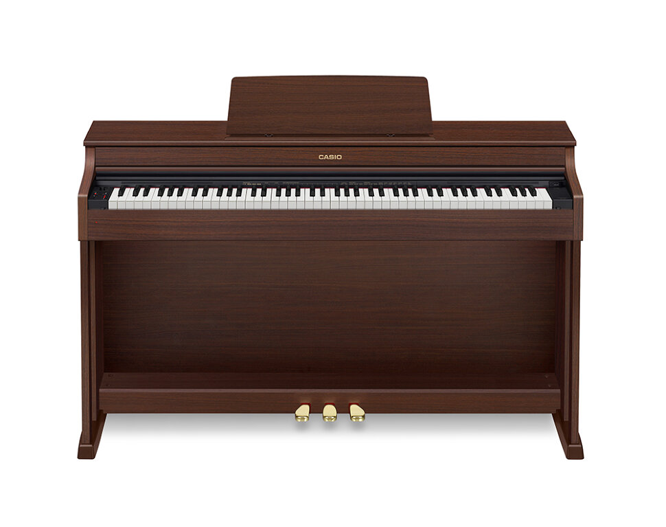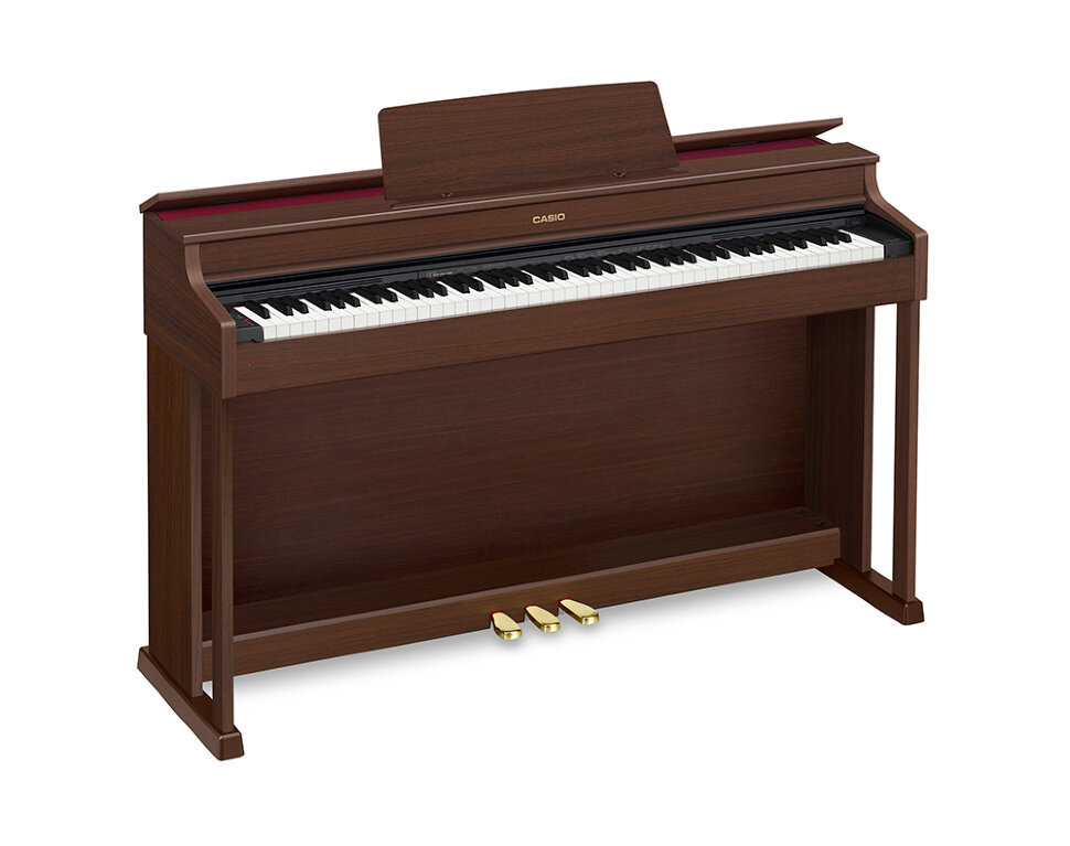 Casio AP-470 - цифровое пианино с аутентичным звучанием и классическим дизайном. AP-470 имеет сразу два основных тембра рояля. Первый тембр отлично подходит для классики, так как предлагает колоссальный динамический диапазон и обладает очень медленно гаснущим послезвучием. Второй тембр более ярок и прямолинеен, поэтому рекомендуется для джазовой, поп- и рок- музыки. Имея в арсенале сразу два таких разных, но весьма впечатляющих звучания, исполнитель может свободно экспериментировать в любом музыкальном жанре. В этой модели Casio совершенствует две свои уникальные для данного сегмента технологии: технологию резонанса струн, которая воспроизводит резонанс каждой отдельной клавиши, а также тональная чувствительность клавиатуры, которая оптимизирует звучание тембров рояля и пианино, в зависимости от туше исполнителя. С такими возможностями исполнителю всегда будет комфортно в плане естественности звучания и игры.