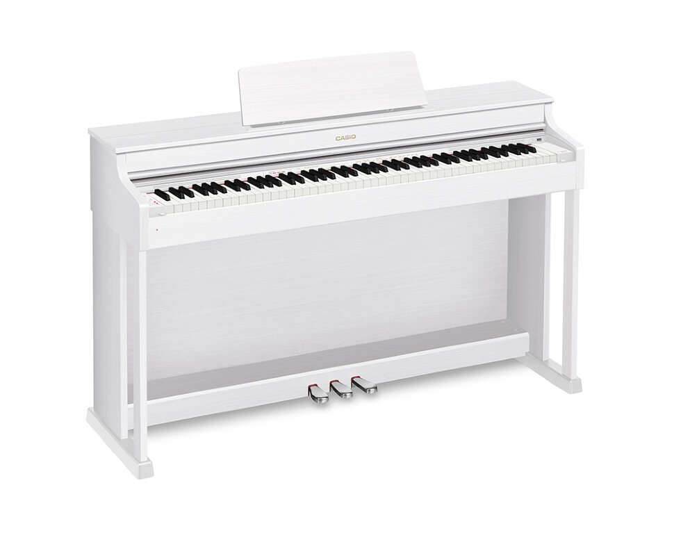 Casio AP-470 - цифровое пианино с аутентичным звучанием и классическим дизайном. AP-470 имеет сразу два основных тембра рояля. Первый тембр отлично подходит для классики, так как предлагает колоссальный динамический диапазон и обладает очень медленно гаснущим послезвучием. Второй тембр более ярок и прямолинеен, поэтому рекомендуется для джазовой, поп- и рок- музыки. Имея в арсенале сразу два таких разных, но весьма впечатляющих звучания, исполнитель может свободно экспериментировать в любом музыкальном жанре. В этой модели Casio совершенствует две свои уникальные для данного сегмента технологии: технологию резонанса струн, которая воспроизводит резонанс каждой отдельной клавиши, а также тональная чувствительность клавиатуры, которая оптимизирует звучание тембров рояля и пианино, в зависимости от туше исполнителя. С такими возможностями исполнителю всегда будет комфортно в плане естественности звучания и игры.