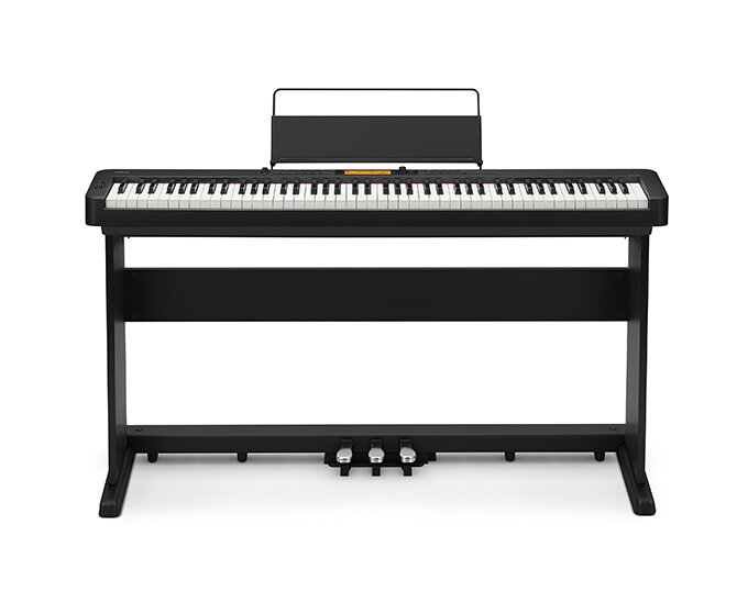 Уровень электрического пианино в первую очередь определяется его клавиатурой. CDP-S360 имеет 88 полноразмерных клавиш молоточкового типа. Трёхсенсорная система чувствительности к силе нажатия делает исполнение максимально близким к традиционной игре на клавишном инструменте, что особенно важно исполнителям классических произведений, а также учащимся музыкальных школ. Подключение к пианино через специальный разъём педалей делает возможными большую часть академических исполнительских приёмов, например, дэмпфирование. При необходимости сенсоры силы нажатия отключается – это сделано для реализации частых в электронной музыке эффектов.