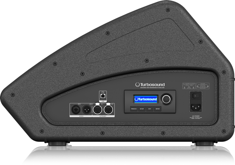 Turbosound TFX – это новая серия концертных сценических мониоров среднего ценового уровня, в которую входят две активных модели TFX122M-AN и TFX152M-AN с 12” и 15” динамиком. В мониторах используются оригинальные НЧ вуферы с катушкой уменьшенной массы, а также высокоэффективные драйверы с титановой диафрагмой диаметром 1”, работающие в рупоре с раскрытием 60° на 40°..Для более качественного звучания вблизи монитора, в серии TFX, как и в более старшей TFM, используется коаксиальное расположение НЧ динамика и ВЧ рупора. Встроенные усилители Klark-Teknik новых мониторов способны развить выходную мощность до 1100 Вт в пике, процессоры обеспечивают функции кроссовера, эквалайзера и задержки. Звуковой сигнал может поступать как в аналоговом виде, так и через интерфейс ULTRANET по Cat-5 кабелю от микшеров или стейджбоксов Behringer и Midas. Регулировка параметров доступна через панель управления c LCD-дисплеем, или через USB-интерфейс с компьютера.