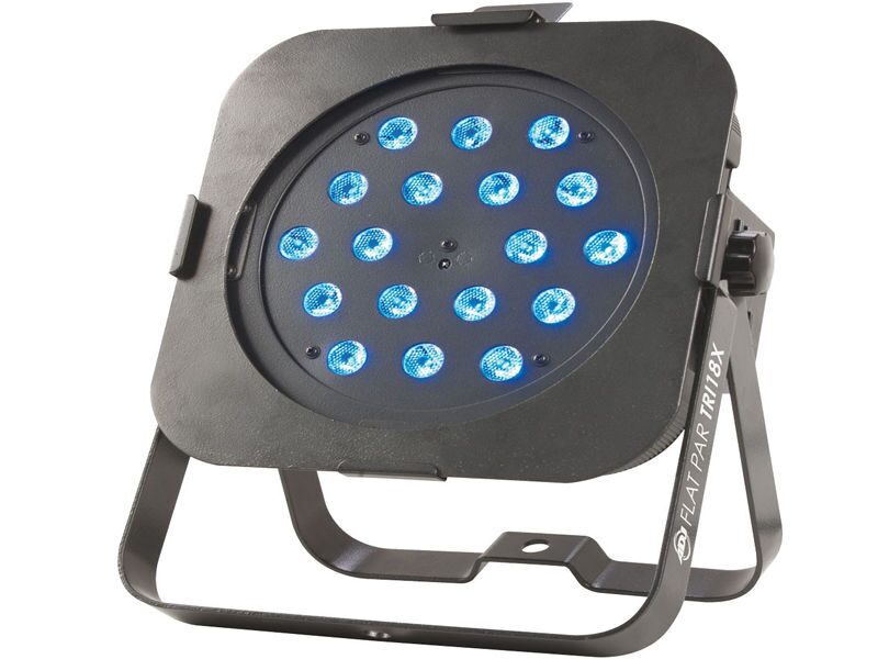 ADJ Flat Par TRI18X – это профессиональный «низкопрофильный» светодиодный светильник Par Can, дающий очень яркий свет. Он оснащен 18 светодиодами TRI мощностью 3 Вт (3-в-1 RGB) и не создает теней RGB. «Низкопрофильность», разъемы питания и входы/выходы питания DMX сбоку, а также двойные подвесные кронштейны делают систему идеальным выбором для мобильных артистов, стационарных установок, а также для монтажа в ферме для подсветки.