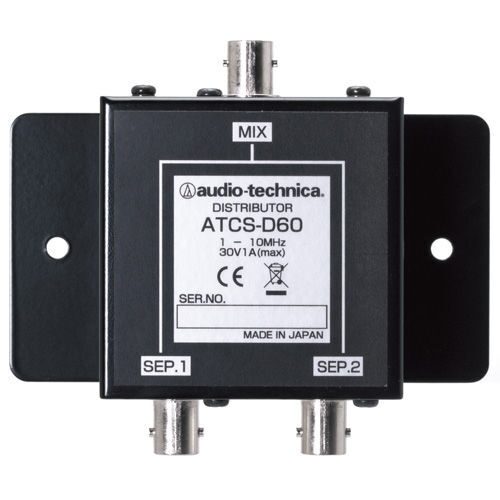 Распределительное устройство Audio-Technica ATCS-D60 – это распределительное устройство от японской компании Audio-Technica, которое используется для увеличения количества антенных разъёмов. Это необходимо для того, что бы к конференц – системе ATCS-60 можно было подключить до 16-ти инфракрасных приёмников/ передатчиков Audio-Technica ATCS-A60. Одно устройство ATCS-D60 имеет один вход и два выхода, но используя несколько устройств количество BNC входов можно увеличить до 16-ти.