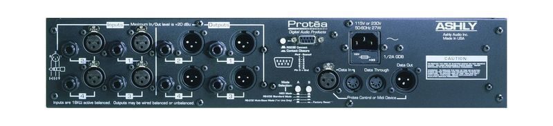 Ashly 4.24PS можно управлять посредством встроенного последовательного порта RS-232 и программной системы Ashly Protea System, либо через MIDI. Внешний вызов до 6 сцен возможен через коннектор RS-232 DB9.