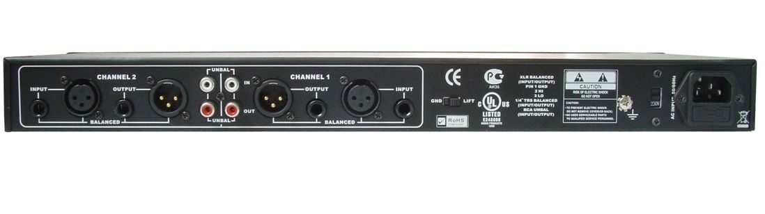 American Audio XEQ-152B Equalizer 2/3 Октавный графический 15-полосный стерео эквалайзер. Независимые органы управления для каждого канала. Регулятор выходного уровня на каждом канале. Переключатель By-pass на каждом канале. Индикатор перегрузки Clip на каждом канале. Симметричные входы и выходы. Разъемы XLR и Jack. Рэковое исполнение 19 1U. Диапазон частот: 20Гц-20кГц, +/-0.5 дБ. Разделение каналов: 50 дБ. Макс. уровень выходного сигнала: +22дБ (6V). Питание: 110V/220V, переключаемое. Габариты: 48мм х264мм х44мм