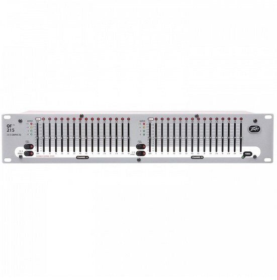Peavey QF 215™ - это двухканальный 2/3-октавный рэковый эквалайзер с диапазоном эквализации 25 Гц – 16 кГц. Предусмотрен обрезной НЧ-фильтр 40 Гц при 18 dB на октаву. Каждая полоса настраивается в диапазоне от +12 dB до -18 dB.