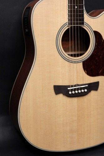 Гитара CRAFTER DE 6/N – электроакустическая версия популярной модели D 6/N, самого доступного по цене инструмента с верхней декой из массива древесины. Форма корпуса «дредноут» – это, пожалуй, самая популярная форма акустических гитар. Разработанный компанией Martin в 20-х годах прошлого столетия, «дредноут» до сих пор считается стандартом для вестерн-гитар, который с успехом используется большинством производителей и огромным числом музыкантов, играющих в самых различных стилях. Эти корпуса имеют несколько больший размер, чем классические или оркестровые гитары, а звучание имеет явный акцент на низкие частоты.