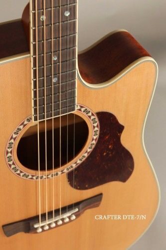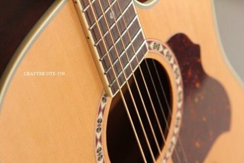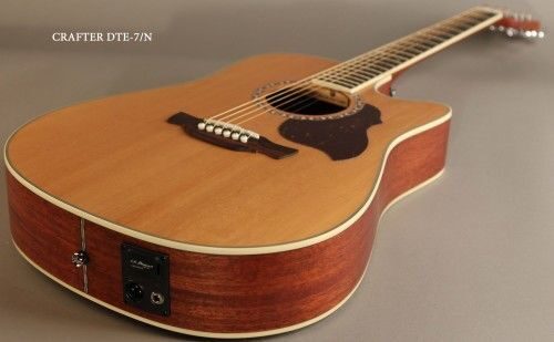 Электроакустическая гитара CRAFTER DTE 7/N – версия дредноута DE 7/N, но с уменьшенной глубиной корпуса. Гитары с подобными корпусами созданы для работы на сцене – они легче и удобнее, но, главное, тонкий корпус значительно меньше подвержен «заводкам» от обратной связи.